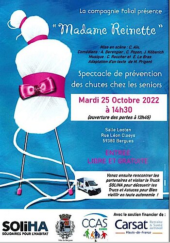 La compagnie Folial vous présentera "Madame Reinette", un spectacle de prévention des chutes chez les séniors, le mardi 25 octobre 2022, à la Salle…